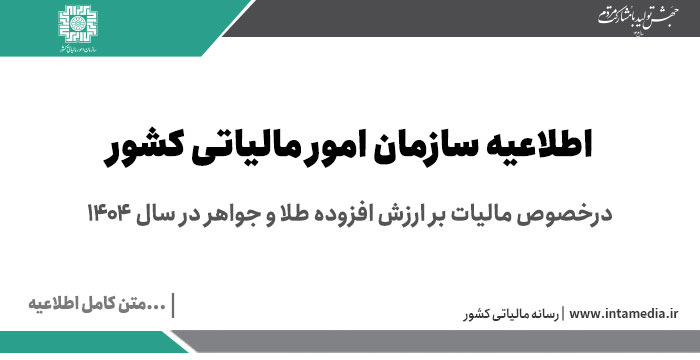 به اطلاع کلیه فروشندگان طلا، جواهر و پلاتین میرساند بر اساس بند (خ) تبصره (۱) قانون بودجه سال ۱۴۰۴ کل کشور، نرخ مالیات بر ارزش افزوده «اجرت ساخت، سود، و حق العمل مربوط به فروش طلا، جواهر و پلاتین موضوع جزء (۲) بند (ب) ماده (۲۶) قانون مالیات بر ارزش افزوده» از ابتدای سال ۱۴۰۴ همچون سایر کالا و خدمات موضوع ماده ۷ قانون مالیات بر ارزش افزوده، ۱۰ درصد می باشد.