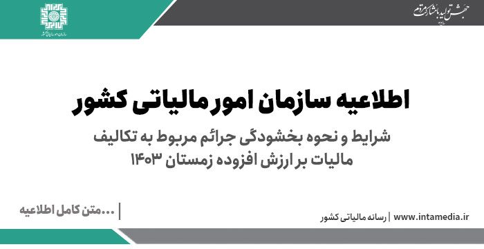 ادارات امور مالیاتی موظف اند در مورد مؤدیانی که حداکثر تا روز سه شنبه مورخ ۱۴۰۴/۲/۲۳شمسی نسبت به مسترد نمودن اظهارنامه مالیات بر ارزش افزوده دوره چهارم سال ۱۴۰۳ (زمستان) از طریق سامانه مؤدیان اقدام مینمایند ترتیبی اتخاذ نمایند که جریمههای موضوع بند ب ماده (۳۶) قانون مالیات بر ارزش افزوده مربوط به مالیات بر ارزش افزوده ابرازی در اظهارنامه و ماده (۳۷) قانون مذکور نسبت به تاخیر در پرداخت مالیات متعلق در اظهارنامه مسترد شده تا تاریخ یاد شده بخشوده شود.