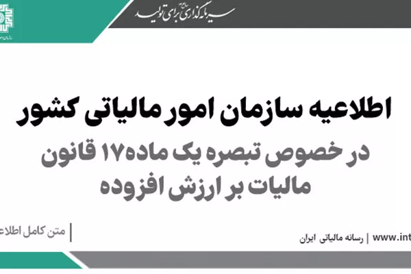 اطلاعیه در خصوص تبصره یک ماده ١٧ قانون مالیات بر ارزش افزوده