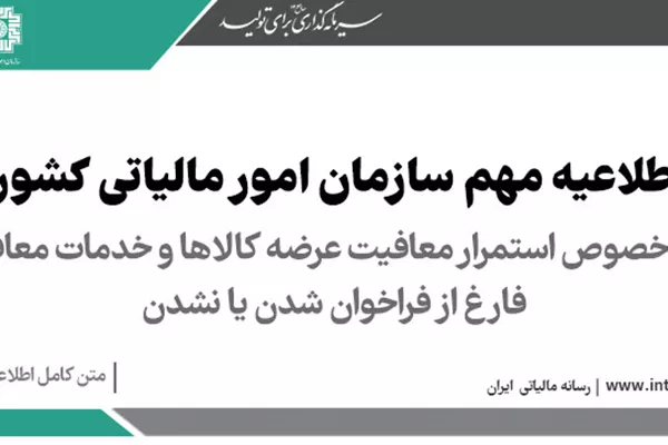اطلاعیه سازمان امور مالیاتی کشور؛ در خصوص استمرار معافیت عرضه کالاها و خدمات معاف، فارغ از فراخوان شدن یا نشدن